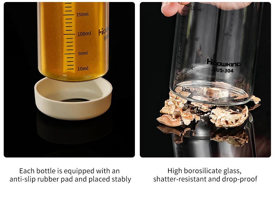 This honey bottle is made of high borosilicate glass and features excellent durability and thermal shock resistance.