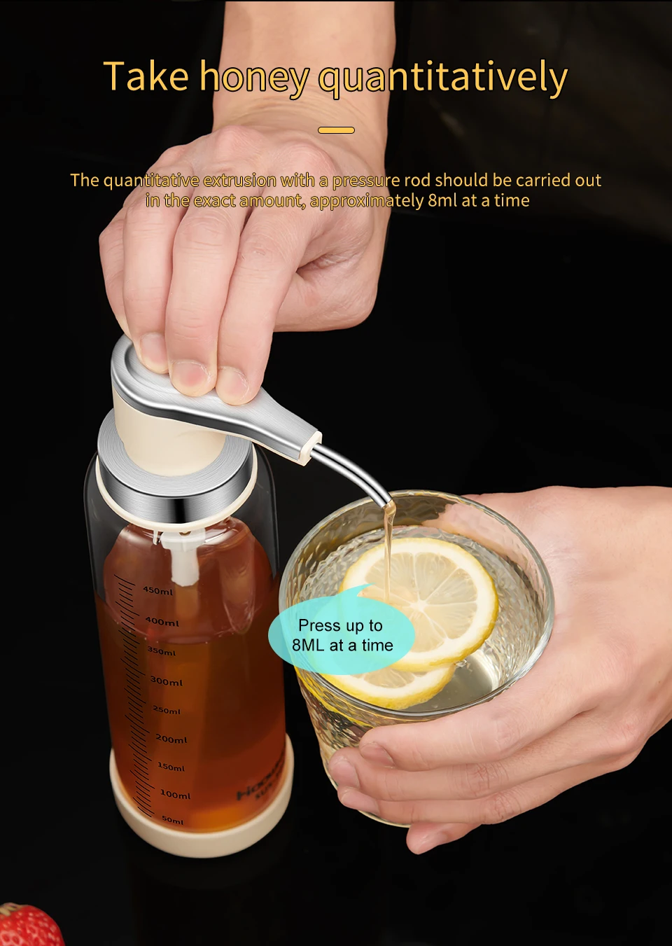 The 300ML and 450ML capacities are available for selection, making it a practical choice for the home and ensuring an adequate supply of your favorite syrups and honey.